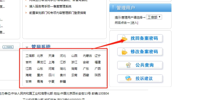 2. 點(diǎn)擊找回備案密碼